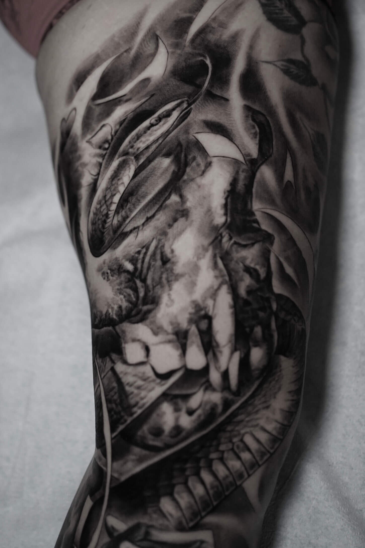 After tattooing from home, I moved into a street shop, and worked at a few of the best tattoo studios in Texas. Now I own and operate my own private studio. My plan is to keep traveling, continuously grow as an artist, broaden my knowledge, and maintain my physical health.